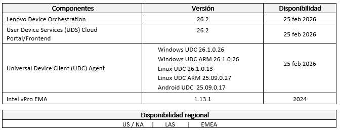 Notas de la version v26.2 de Lenovo Device Manager