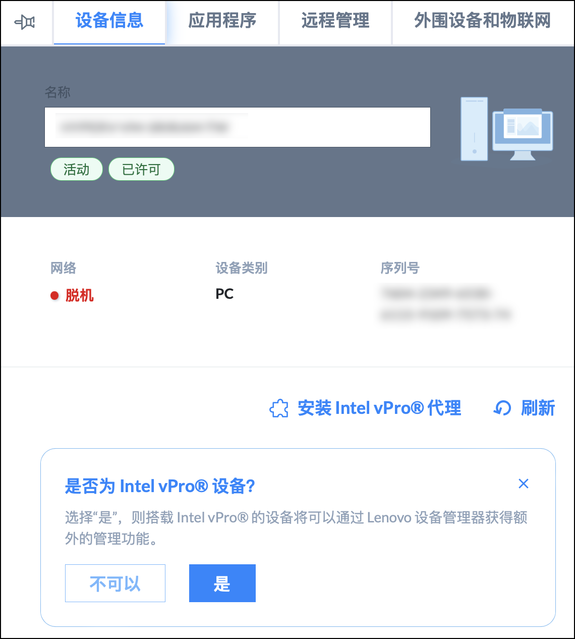 Intel vPro® 代理可以在配置搭载 Intel vPro® 芯片的设备期间自动安装在设备上,也可以在 LDM 上认领设备后手动进行安装。